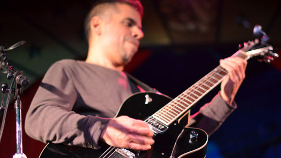 Michael Olivieri plays a fantastic, giant, semi-hollow, electric guitar that alternately fills up and frees space. But always with exquisite tone.